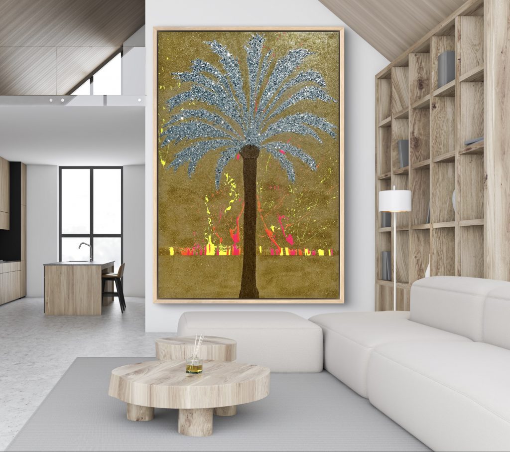 Majestic Palm is part of the exclusive three-piece Palm Series, where each artwork explores the power of light, color, and natural forms to uplift and energize a room.