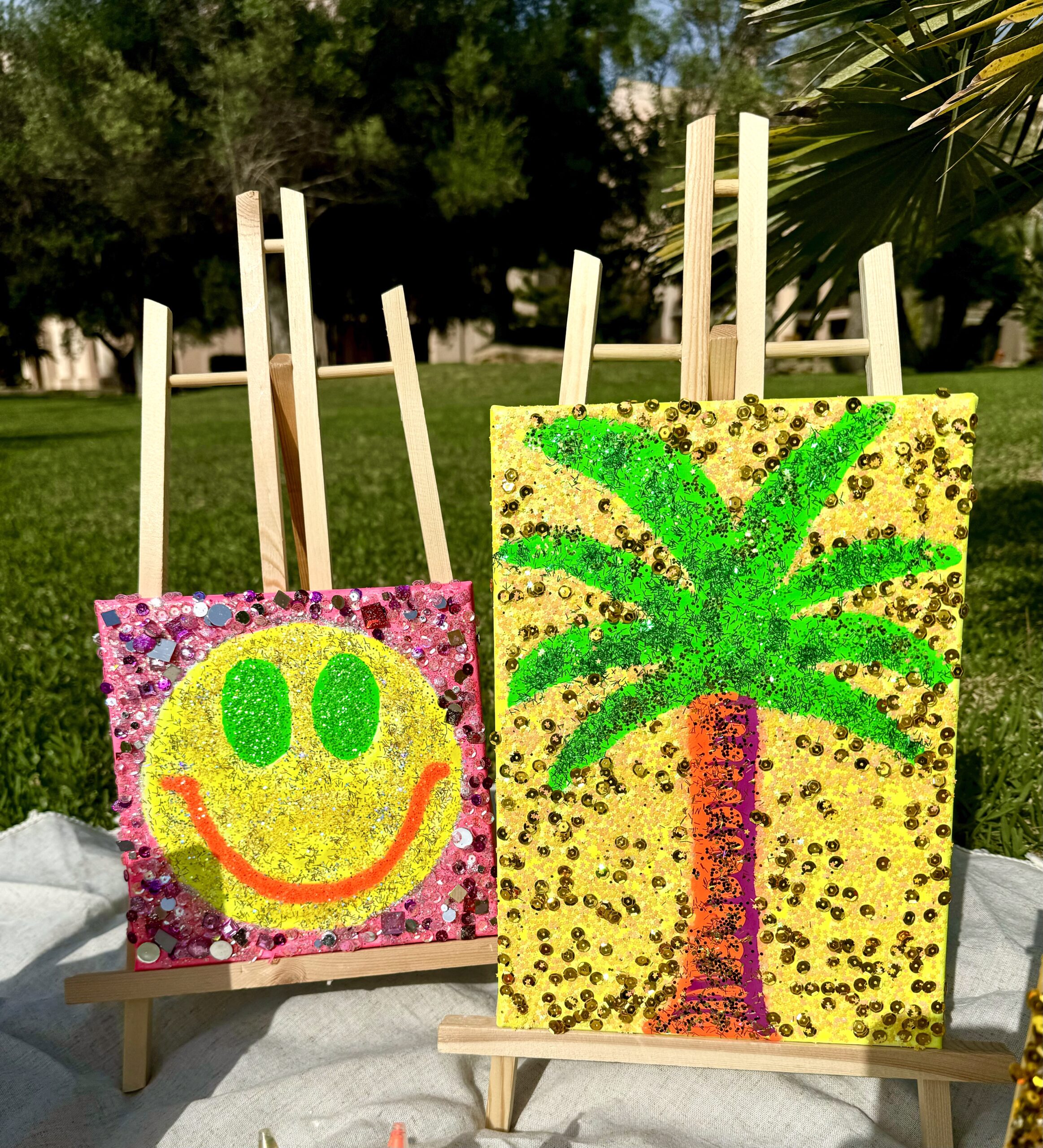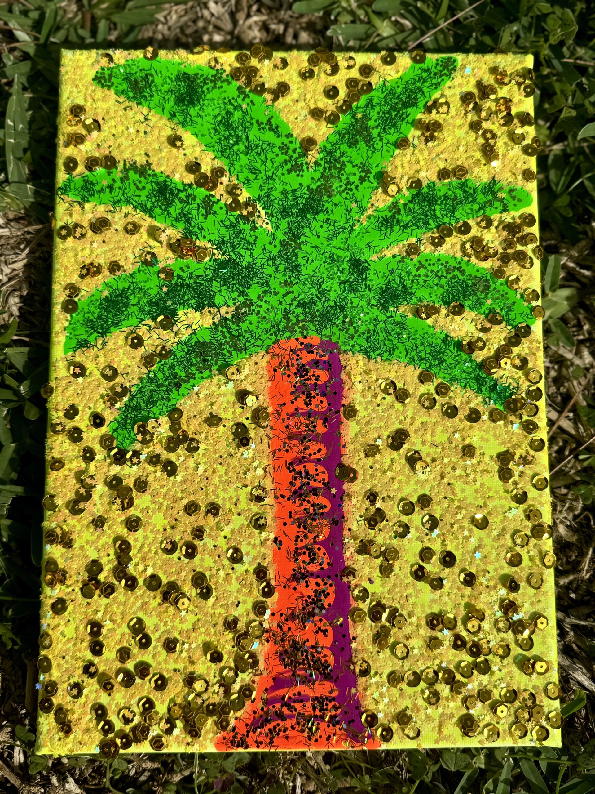 Acrylic/sequins on canvas, varnished with Resin, 20 x 30 cm