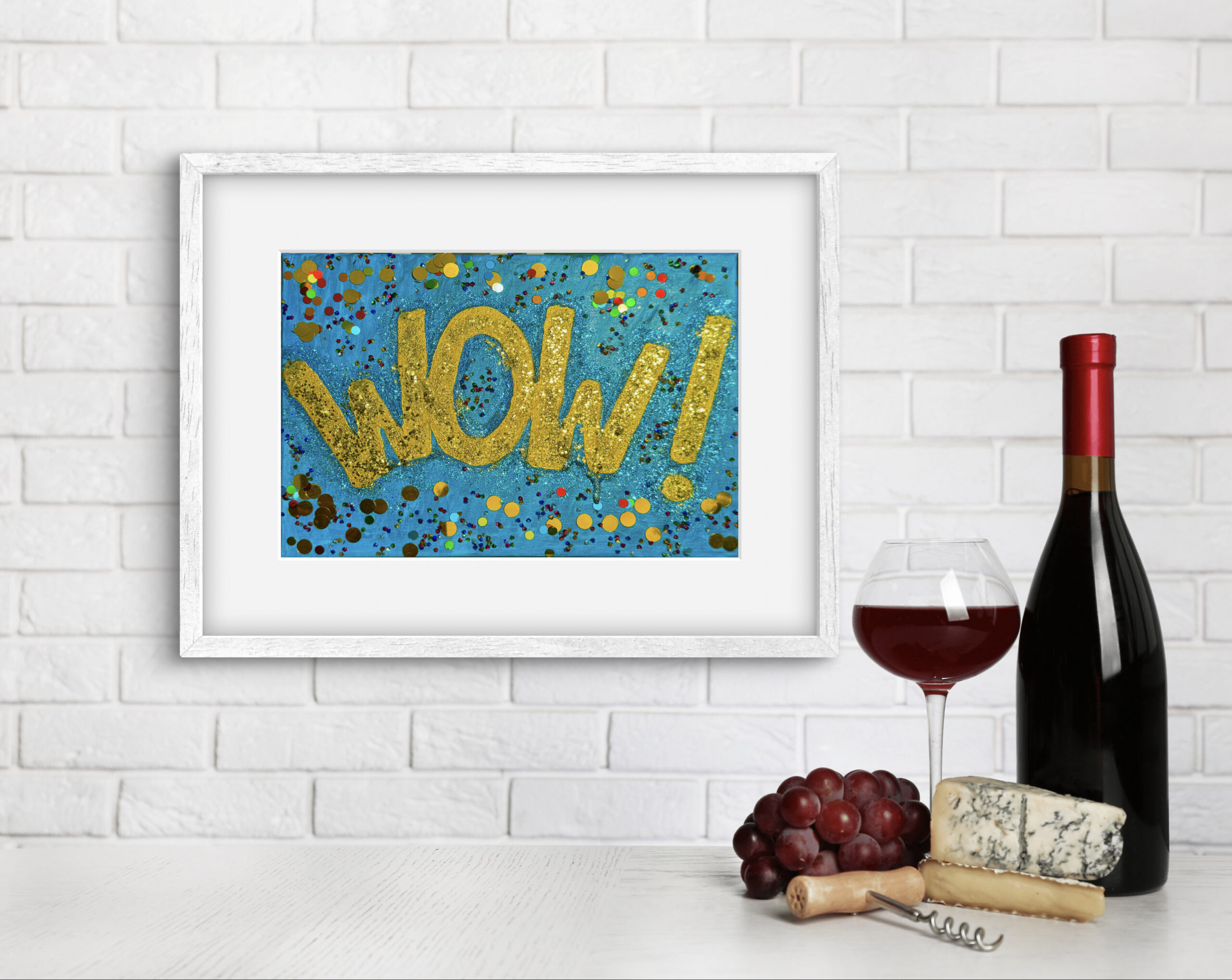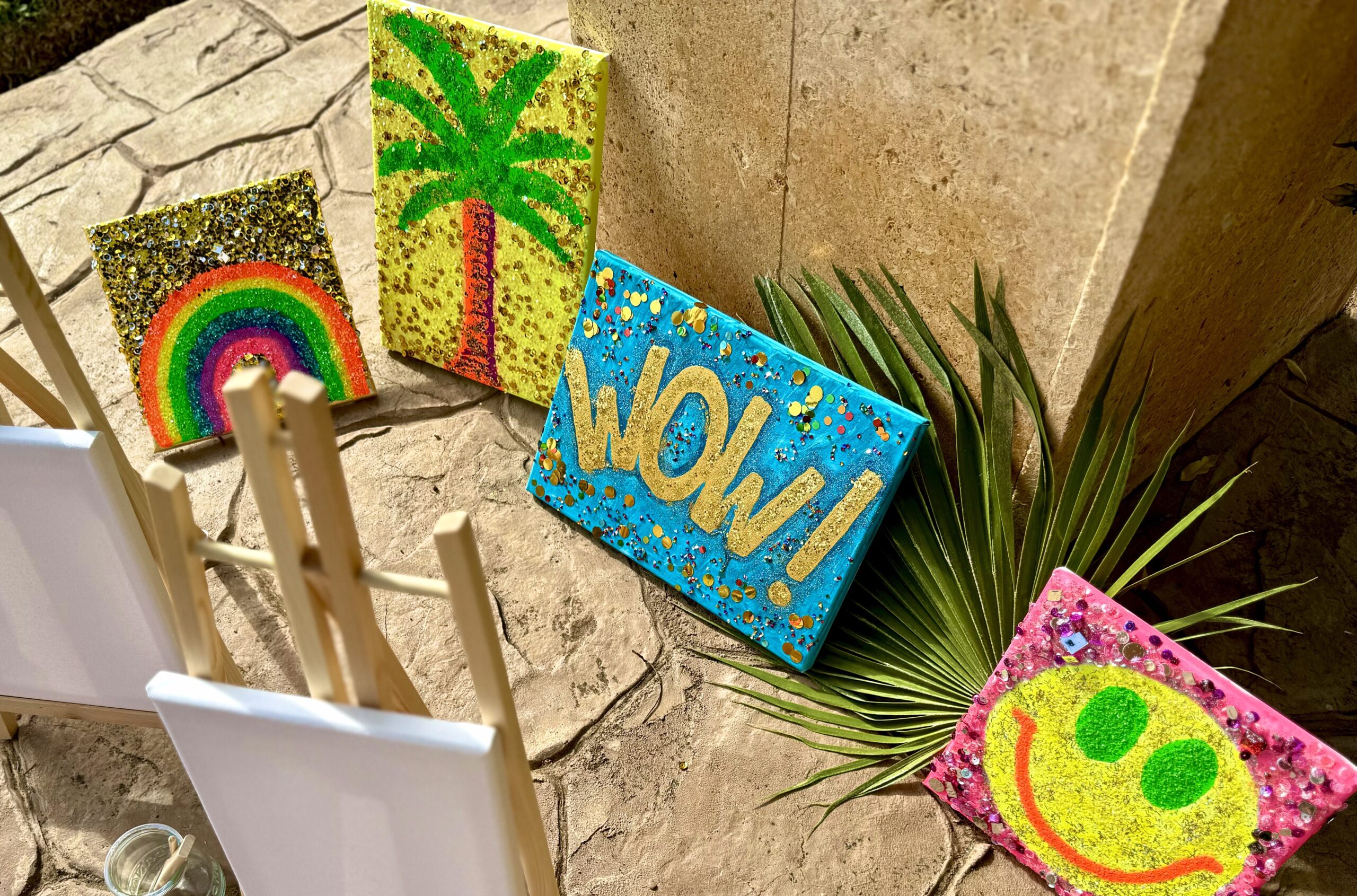 This neon-powered piece is pure joy on canvas. Bursting with color, sparkle and expression – a bold pop of positivity for any space. A radiant eye-catcher in compact size.