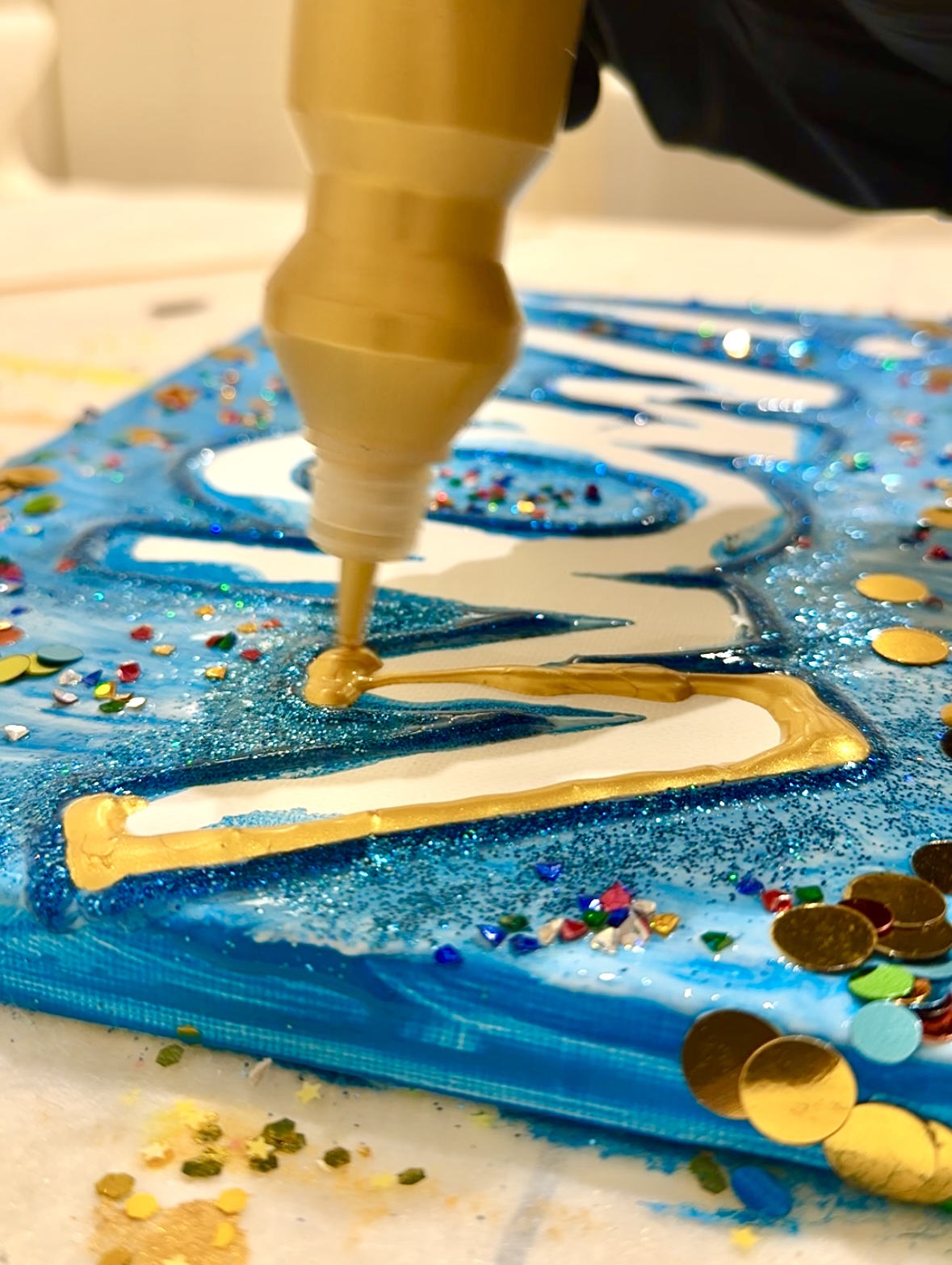 Acrylic/sequins on canvas, varnished with high gloss, 20 x 30 cm